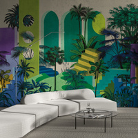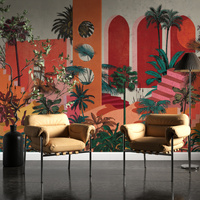 Tapeta winylowa struktura płótna tropikalna architektura kolorowa - OASIS red