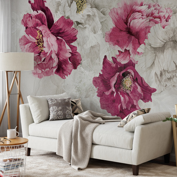 Tapeta winylowa struktura płótna kwiaty peonie różowa - MEMORY LANE violet (decor)