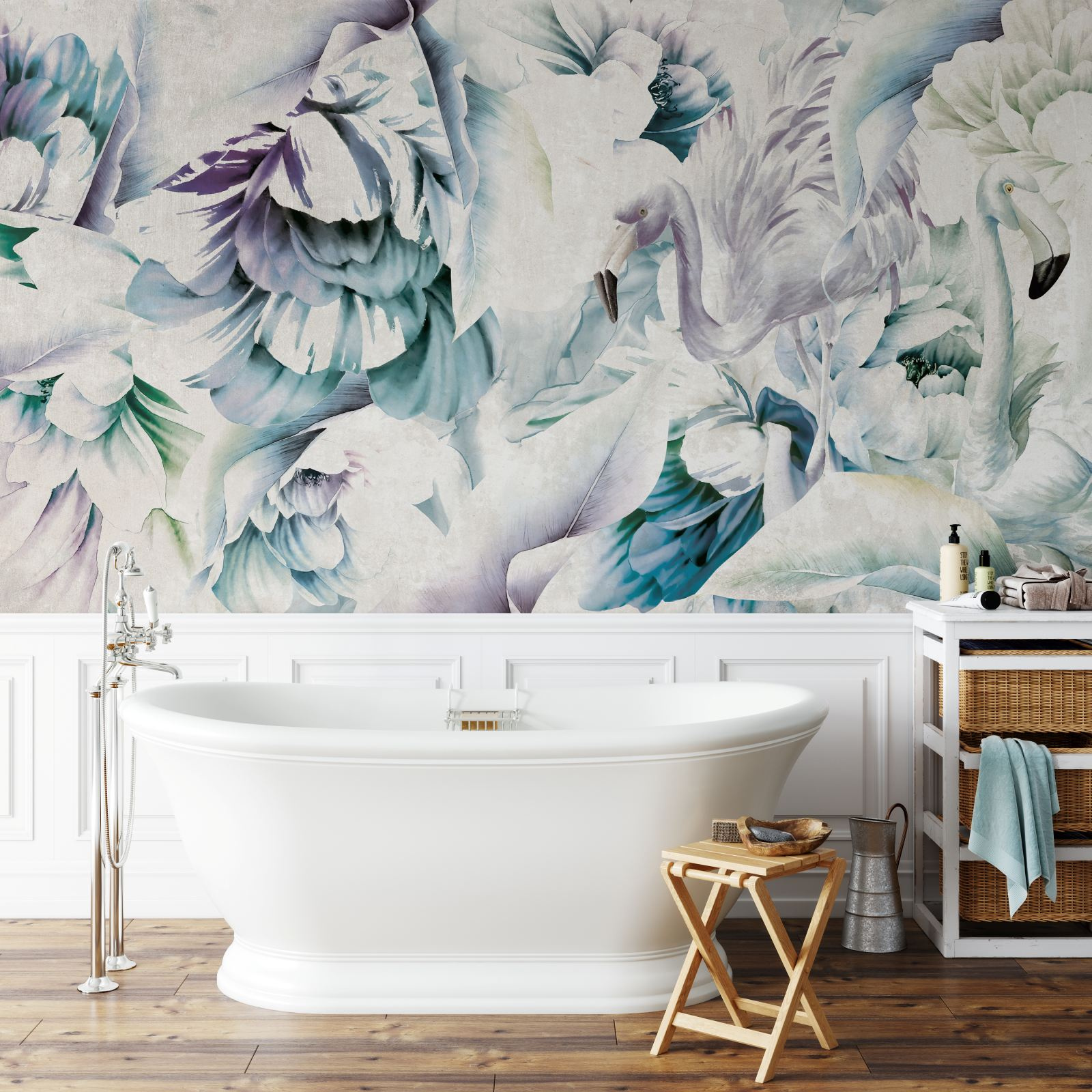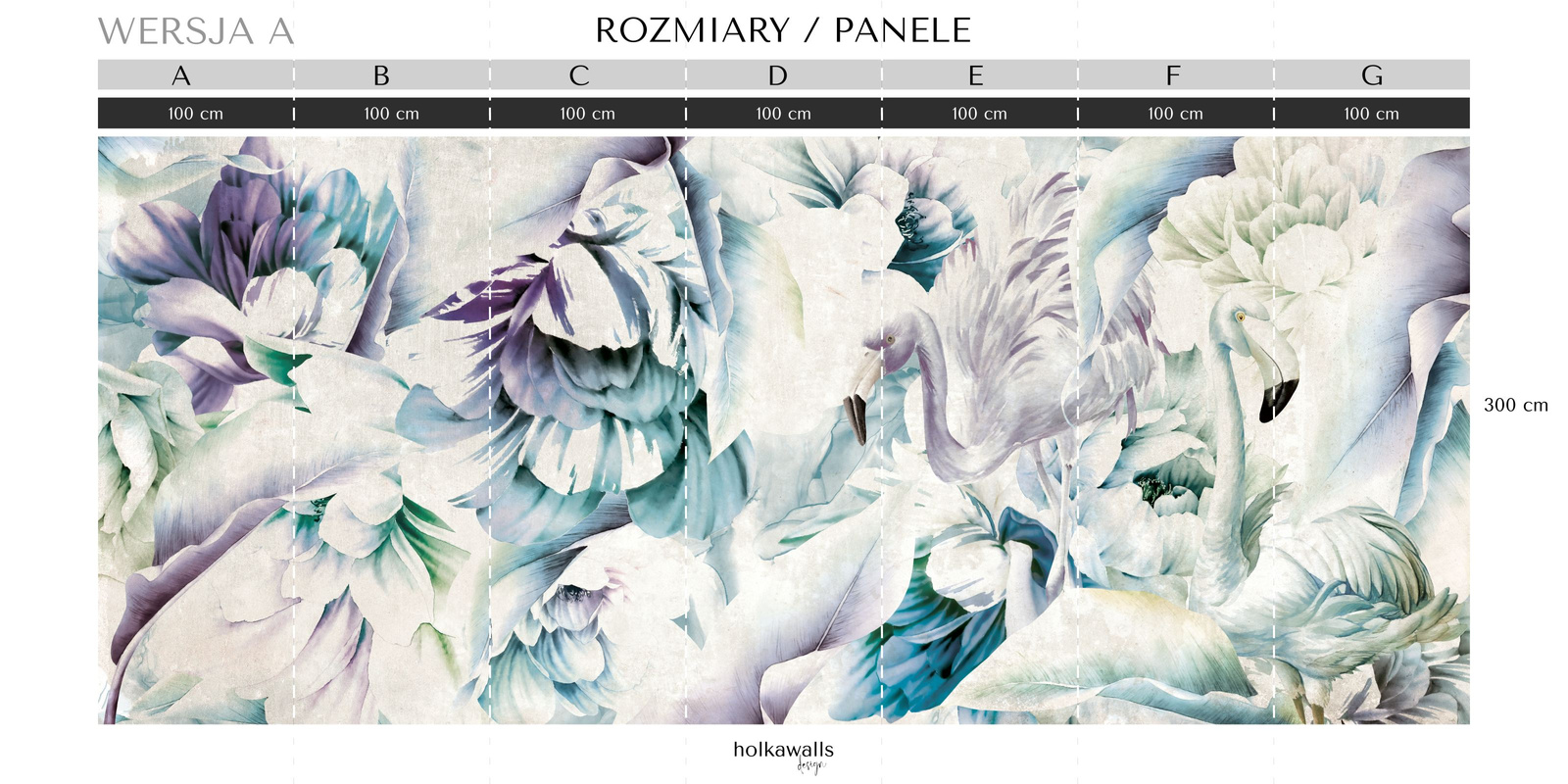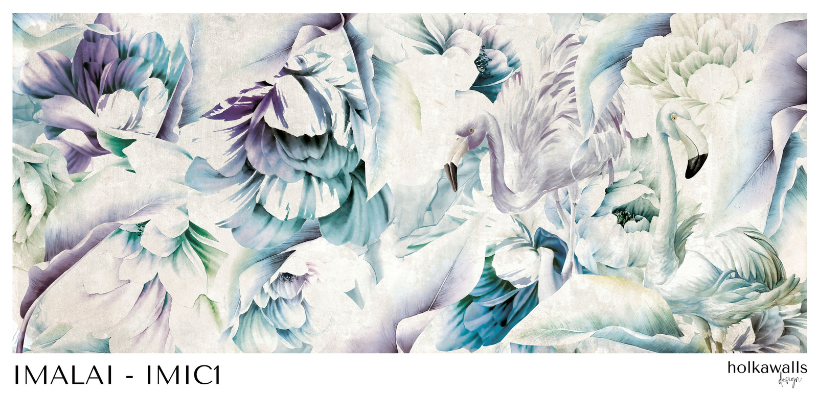 Tapeta winylowa struktura płótna kwiaty flamingi kolorowa - IMALAI icy
