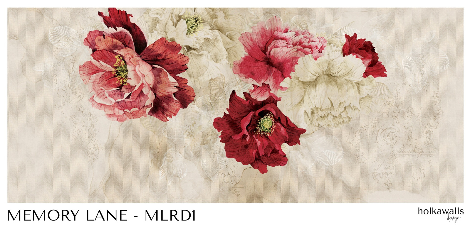 Tapeta winylowa struktura płótna kwiaty peonie czerwona - MEMORY LANE red (decor)