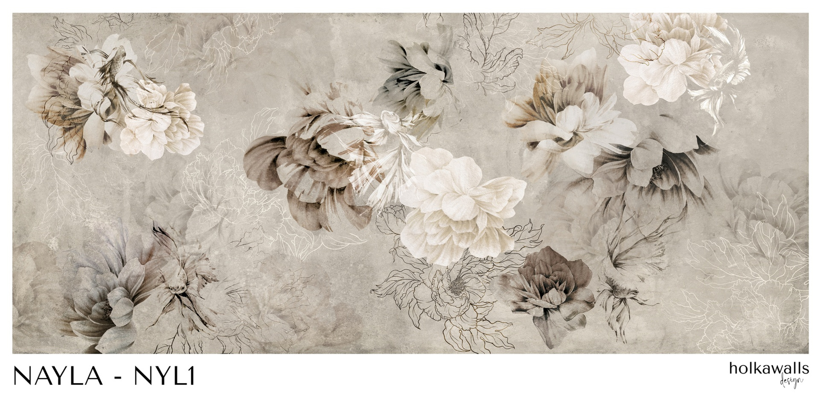 Tapeta winylowa struktura płótna kwiaty peonie rybki beżowa - NAYLA beige (underwater)