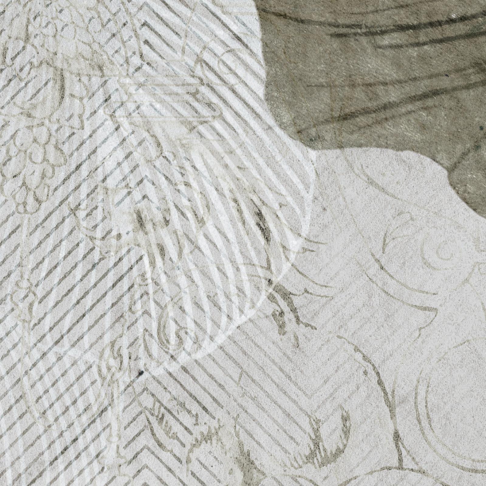 Tapeta winylowa o strukturze płótna z motywem kwiatowym i wzorem dekoracyjnym w kolorze khaki.