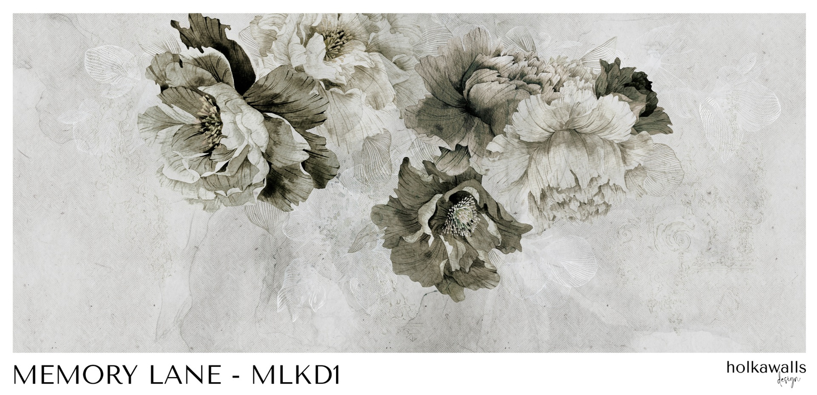 Tapeta winylowa struktura płótna kwiaty peonie szara - MEMORY LANE khaki (decor)