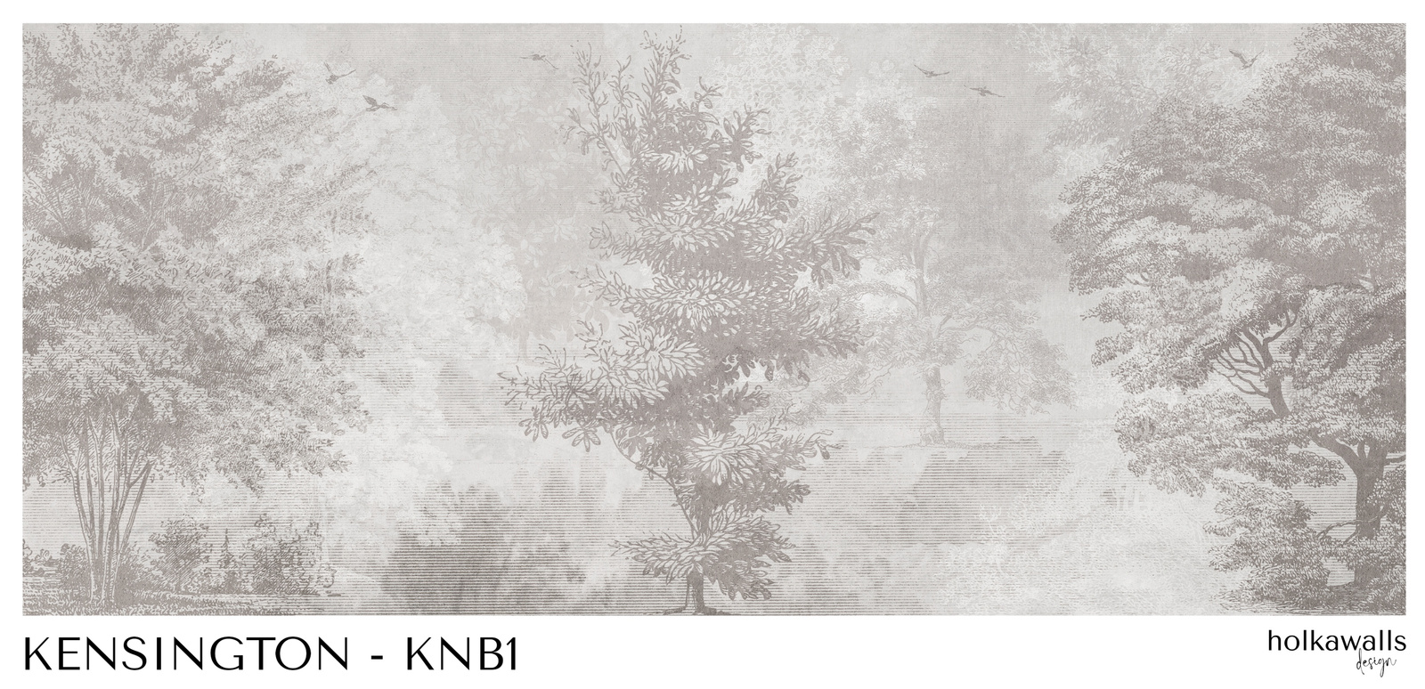 Tapeta winylowa o strukturze płótna z motywem lasu w stylu vintage i w beżowym kolorze.