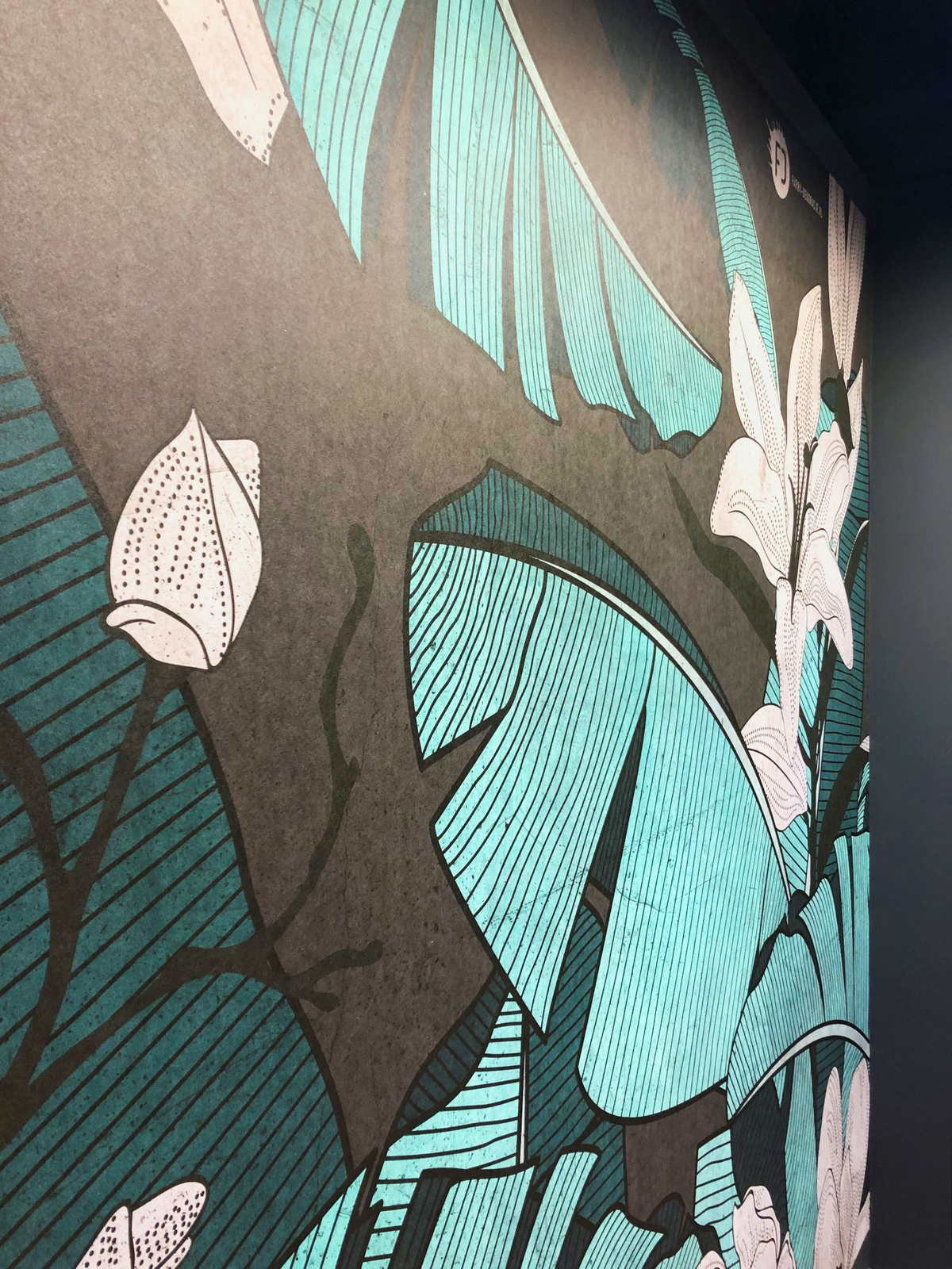 Tapeta wydrukowana na materiale winylowym o strukturze płótna z podkładem flizelinowym. Na życzenie możliwość druku na podkładzie gładkim lub z efektem betonu.