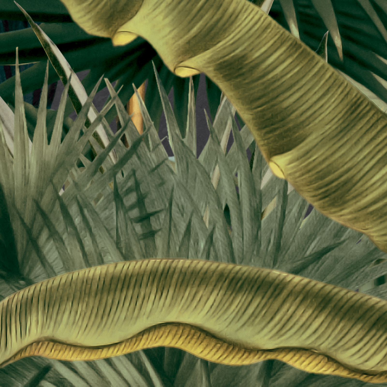 Tapeta winylowa struktura płótna liście dżungla tropikalna zielona - ONE DAY IN EDEN olive (flora)