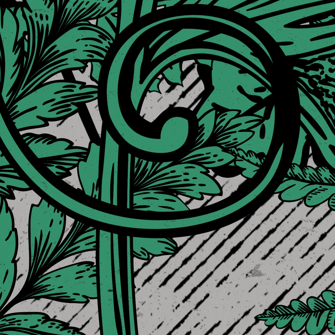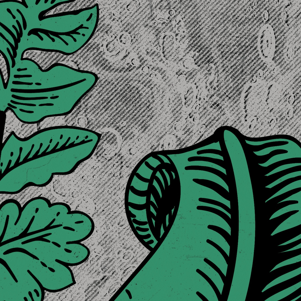 Tapeta winylowa struktura płótna liście paproci księzyc - OVER THE MOON green