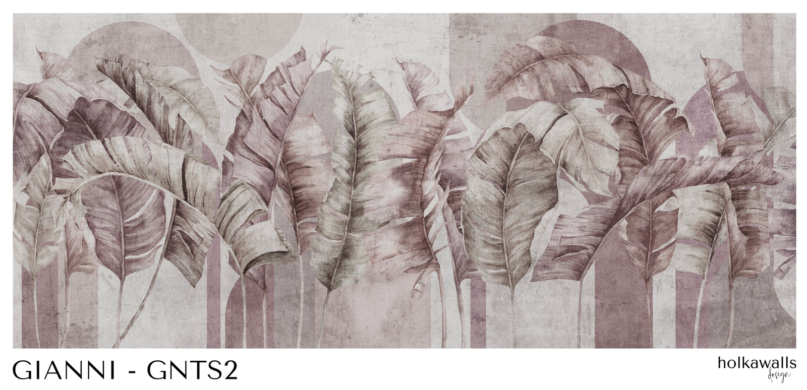 Tapeta winylowa struktura płótna liście tropikalne - GIANNI Arch (pink)