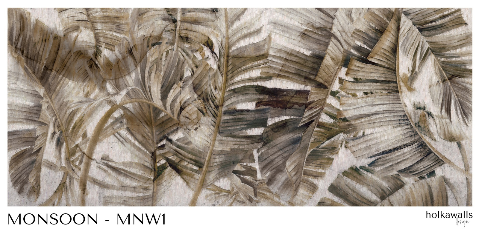 - Tapeta o strukturze płótna z motywem tropikalnych liści i efektem rozmycia.