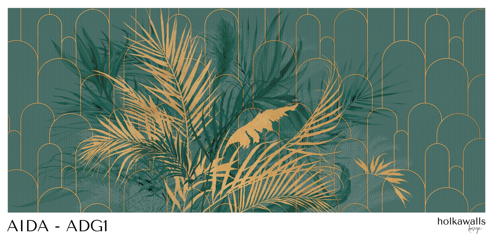Tapeta winylowa struktura płótna liście zielona - AIDA (green)