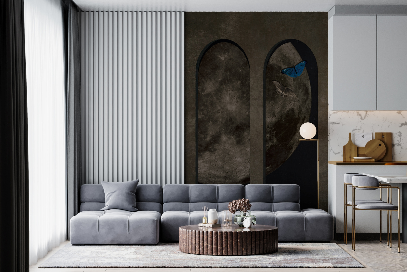 Tapeta winylowa struktura płótna malarstwo księżyc - GIRL WITH BUTTERFLIES (moon)