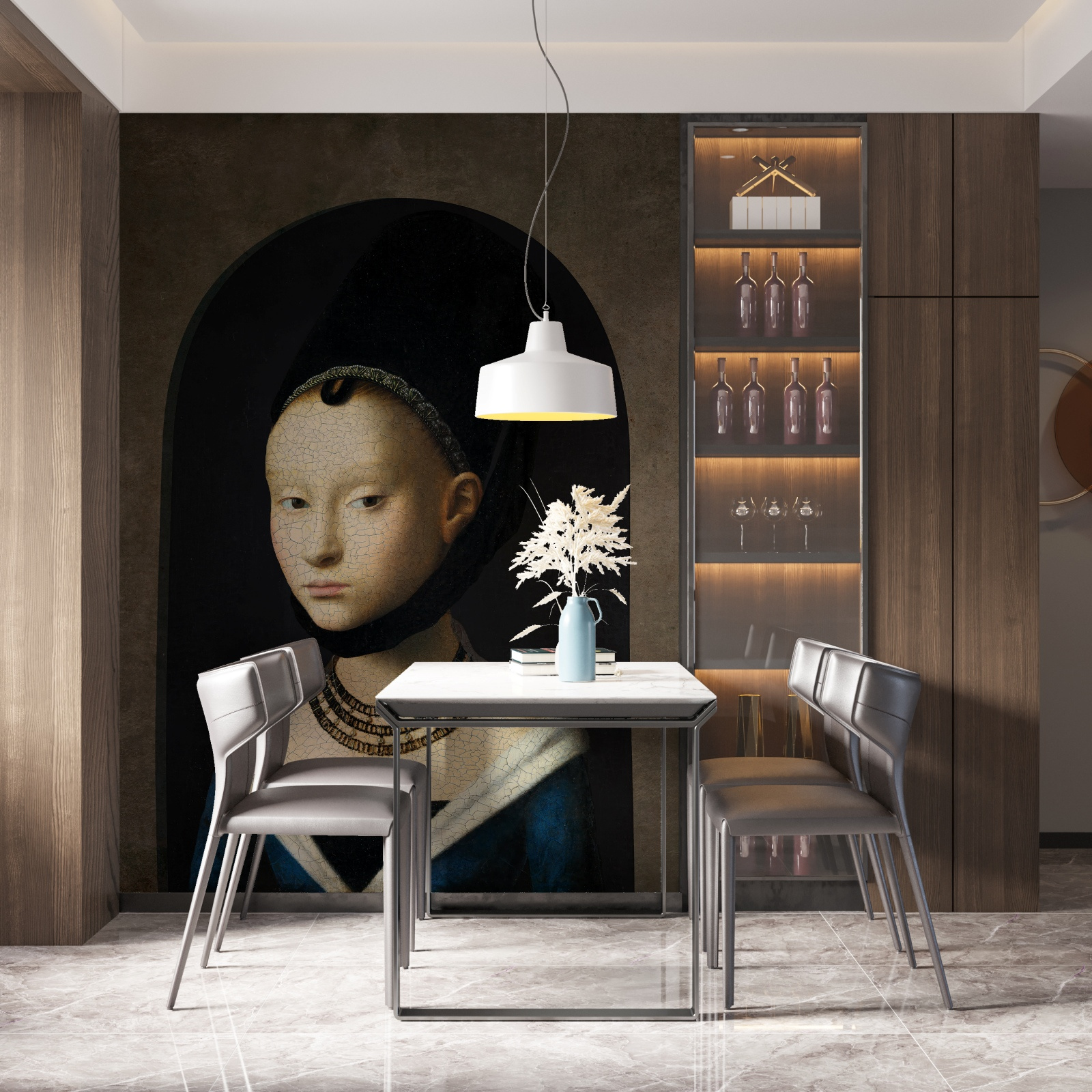 Tapeta wydrukowana na materiale winylowym o strukturze płótna z podkładem flizelinowym. Na życzenie możliwość druku na podkładzie gładkim lub z efektem betonu.