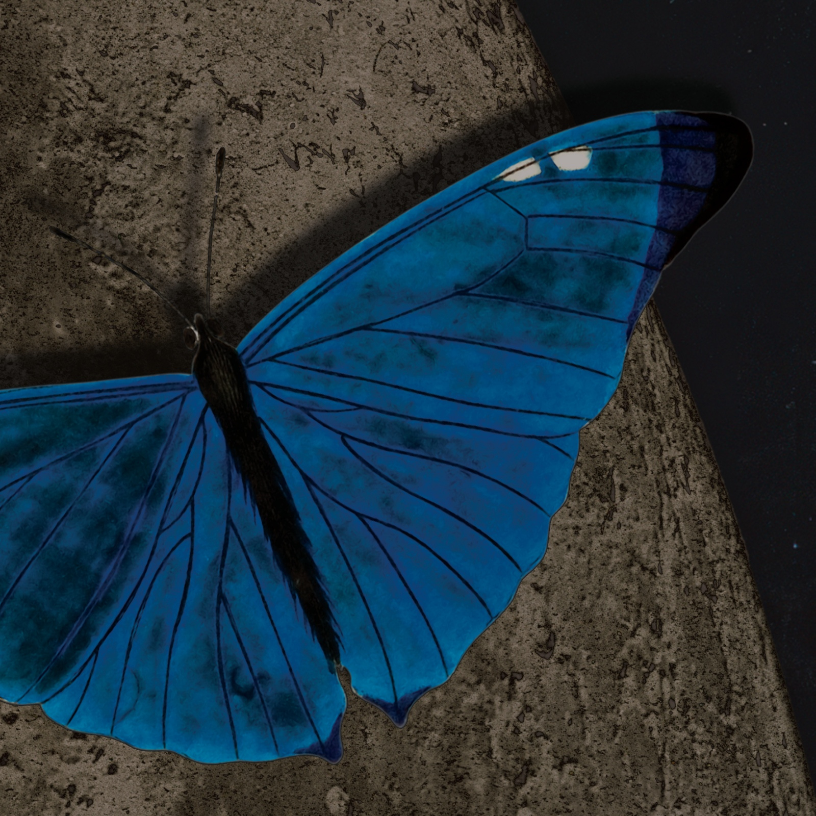 - Tapeta winylowa o strukturze płótna obraz olejny z motylami i księżycem.
