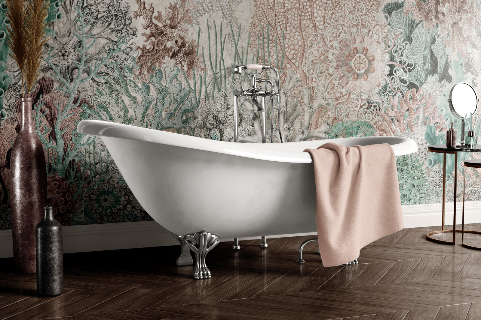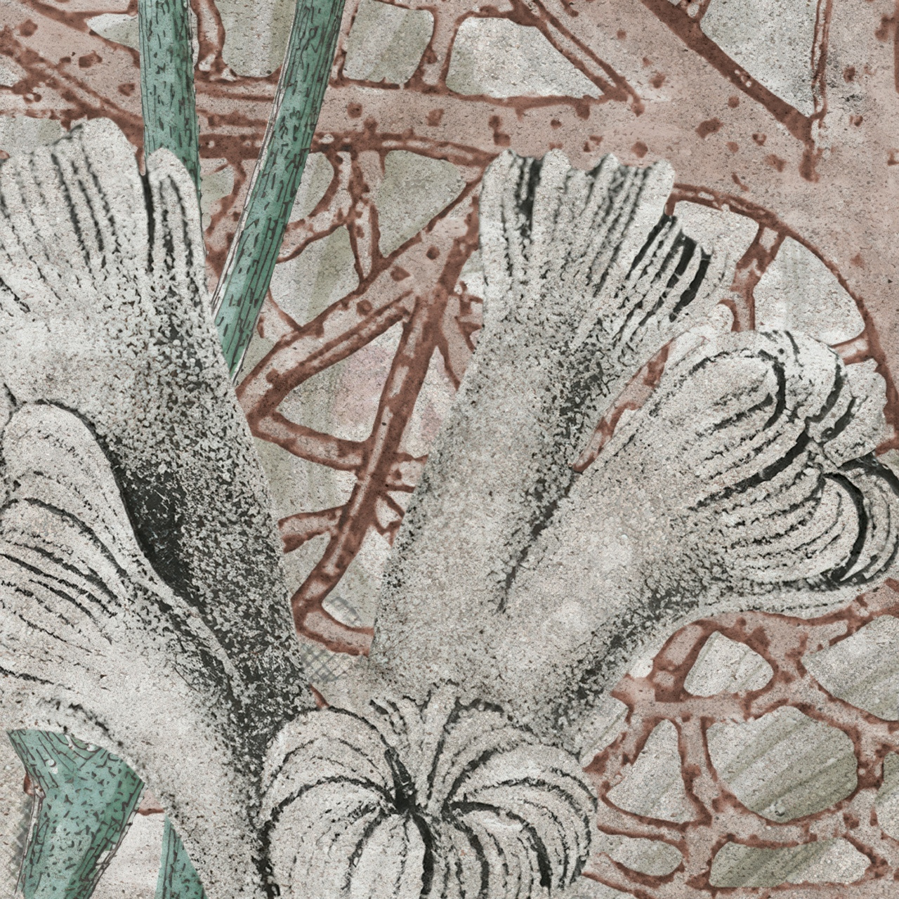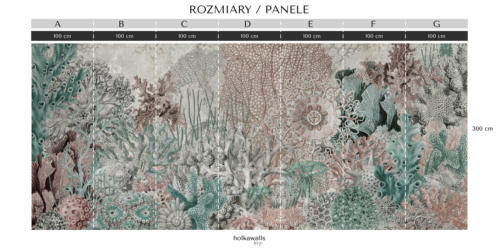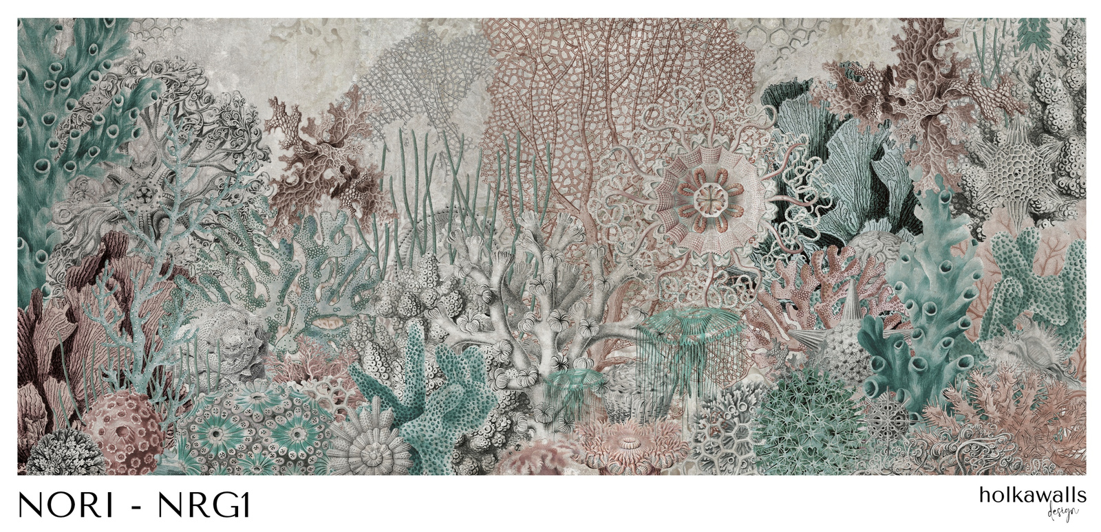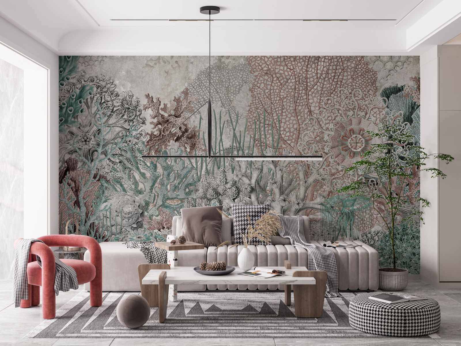 • Tapeta o strukturze płótna z motywem rafy koralowej i morskiej flory.