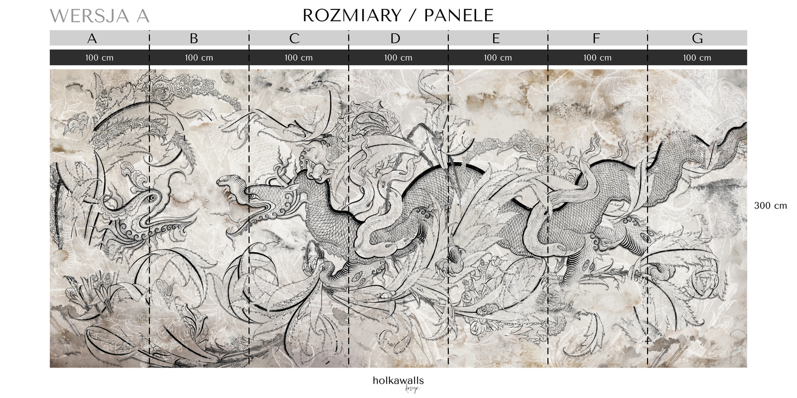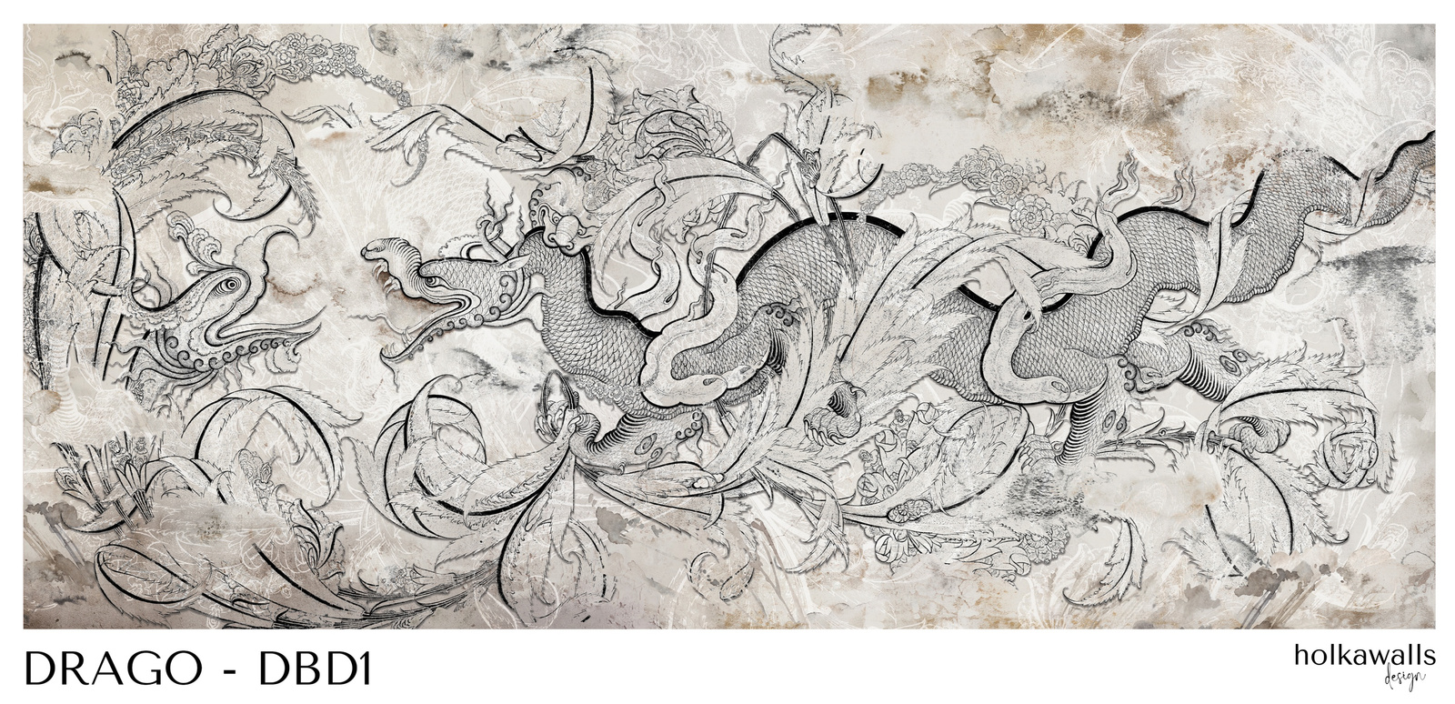 - Tapeta winylowa o strukturze płótna ze smokiem w odcieniach beżu.
