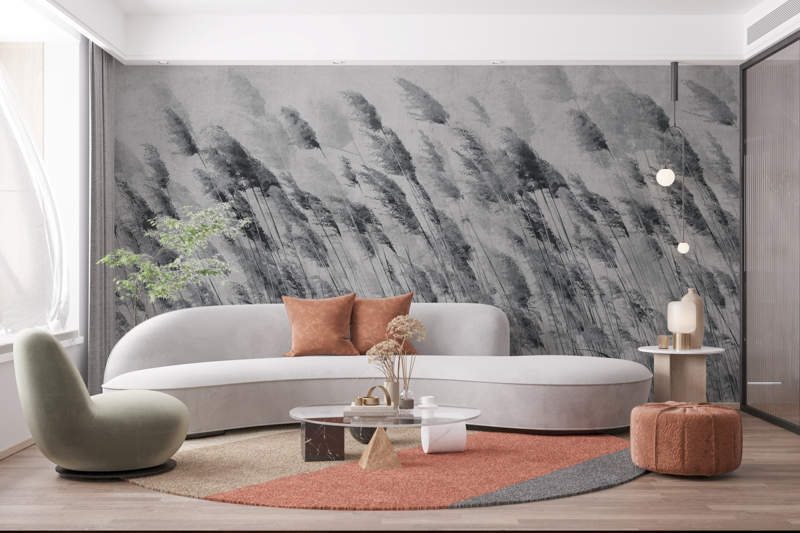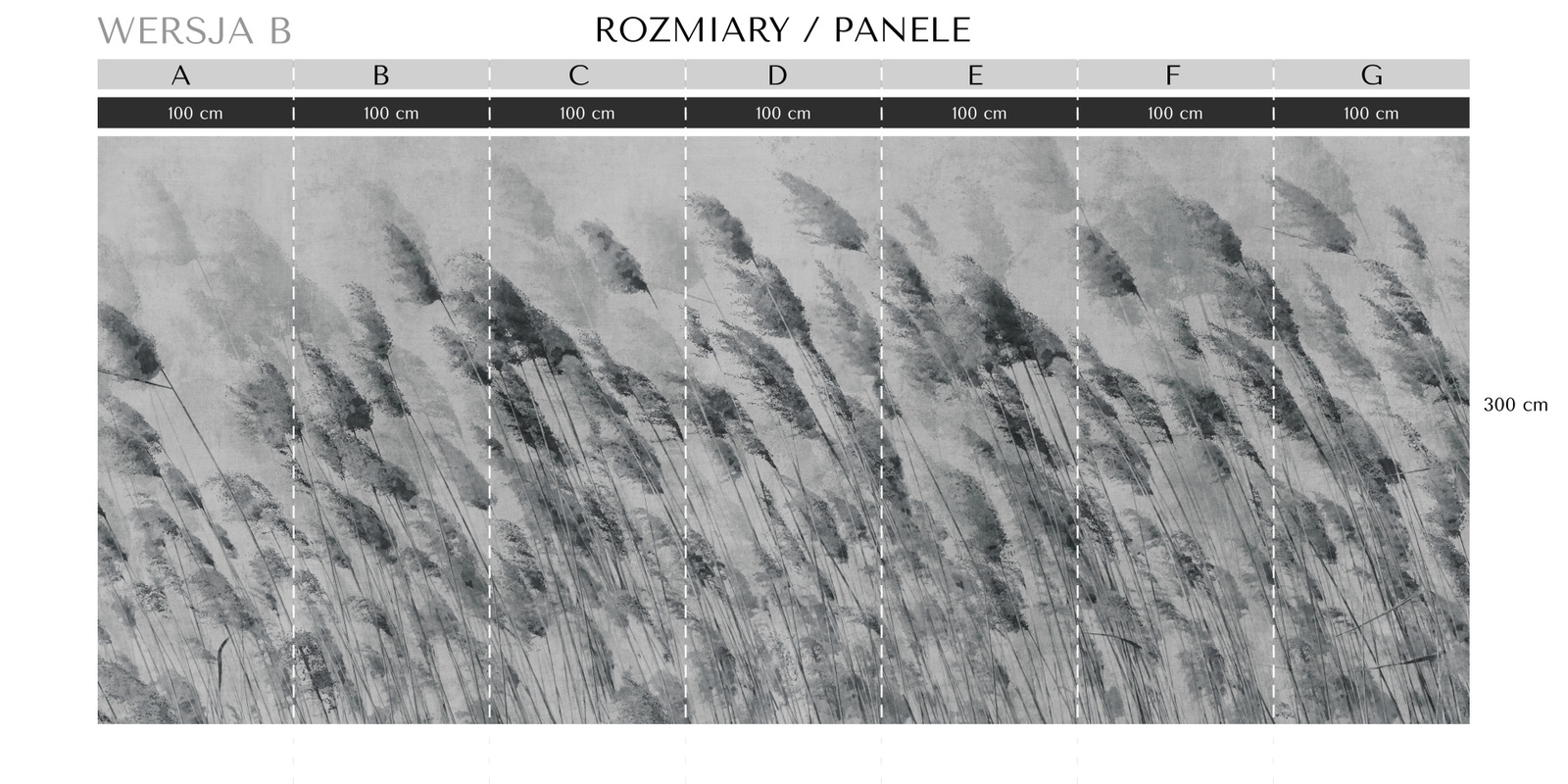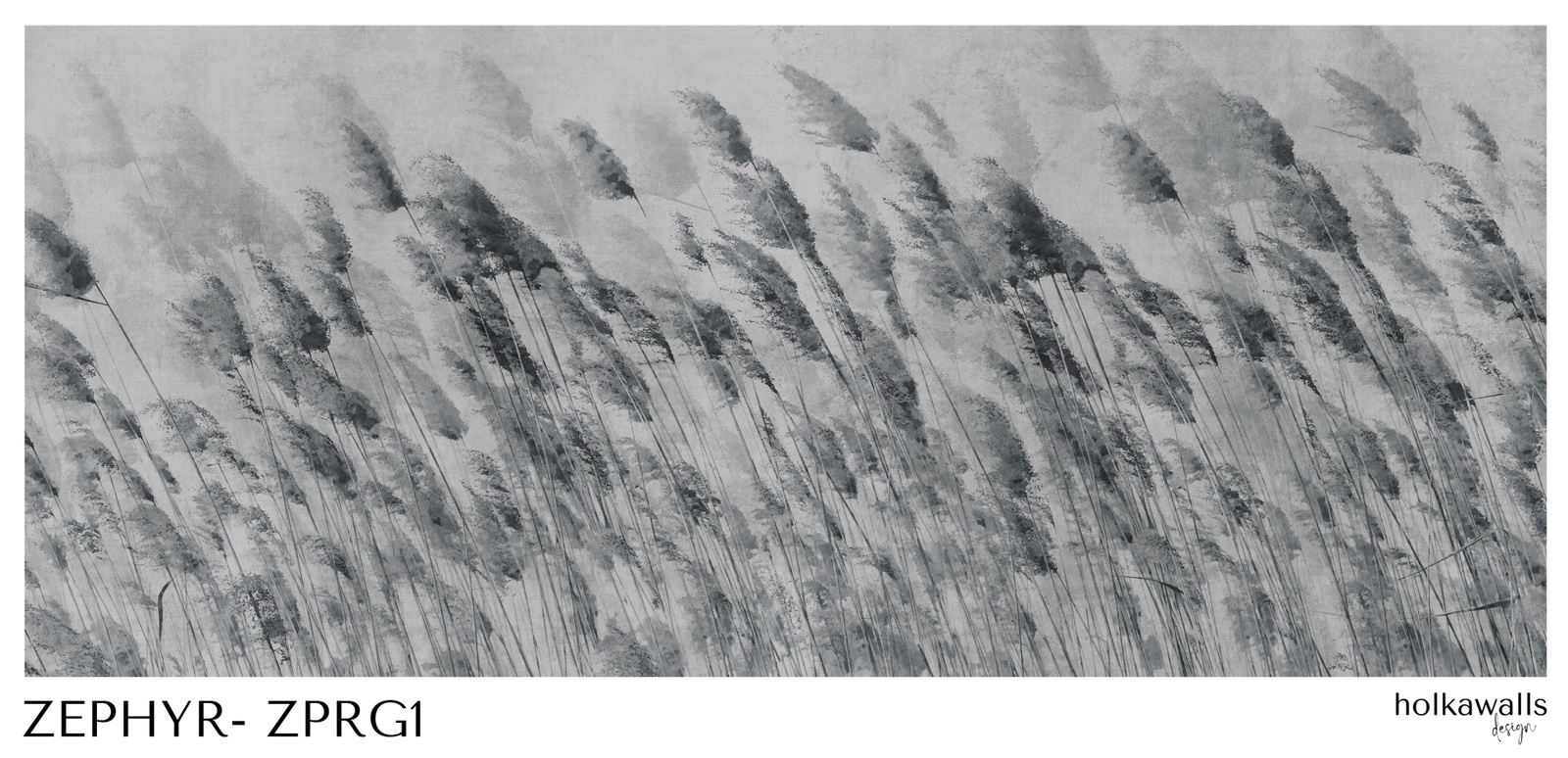 - Tapeta winylowa o strukturze płótna z motywem traw w odcieniach szarości.