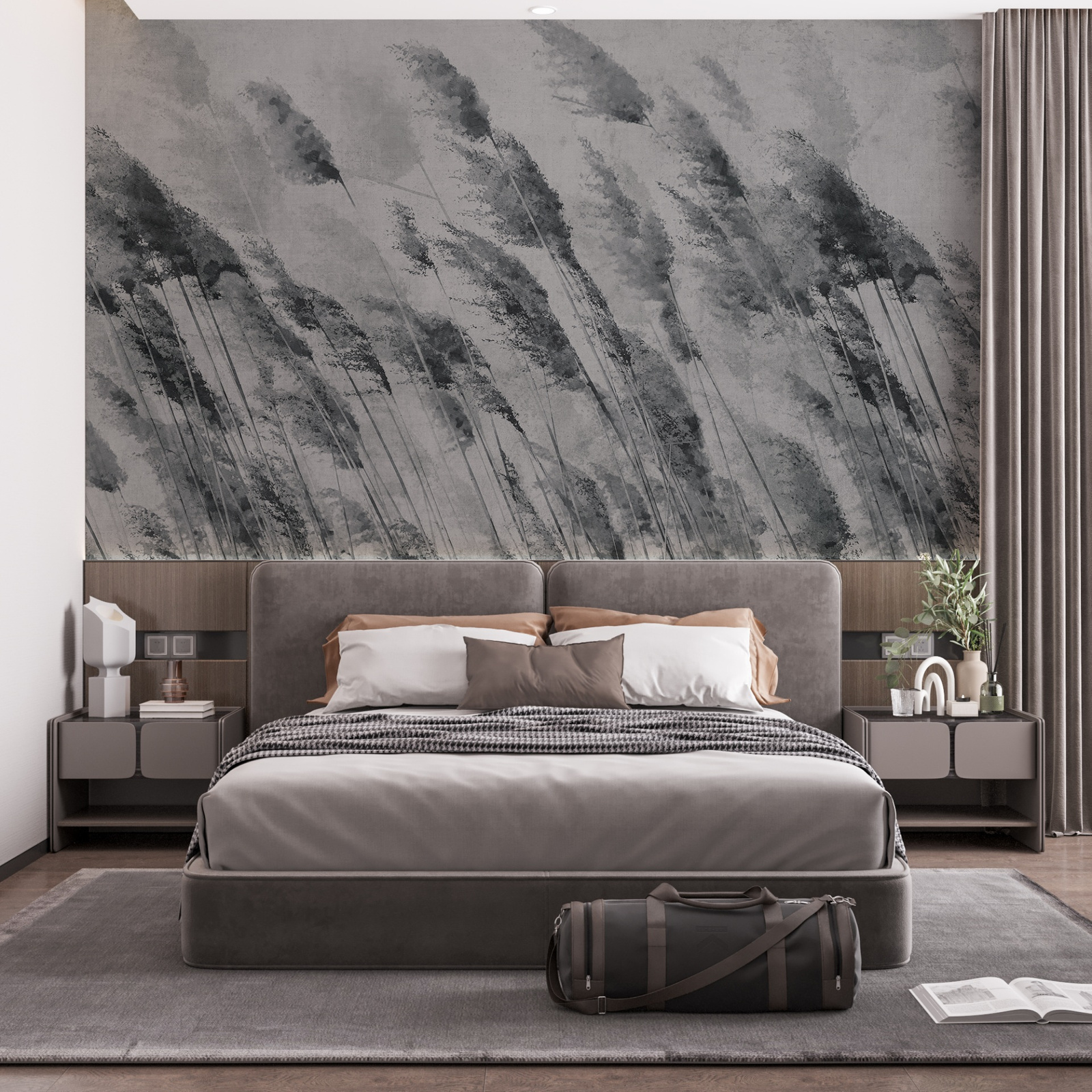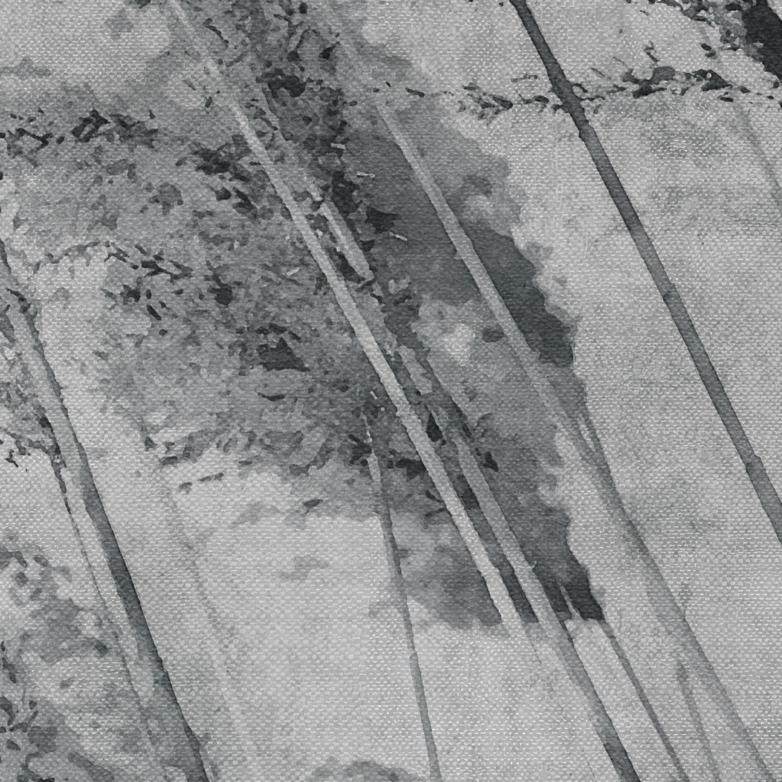 Tapeta winylowa o strukturze płótna z motywem traw w odcieniach szarości na szarym tle.